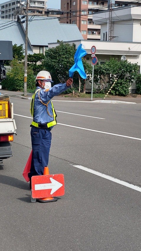 9月23日(木)社内安全衛生パトロールを実施しました。市内の作業現場へ行き隊員さんの健康チェックを行い早めの合図で車両を誘導する様指導しましたよ(^^)/(特に夕暮れ時には十分気をつけること) ご安全に!